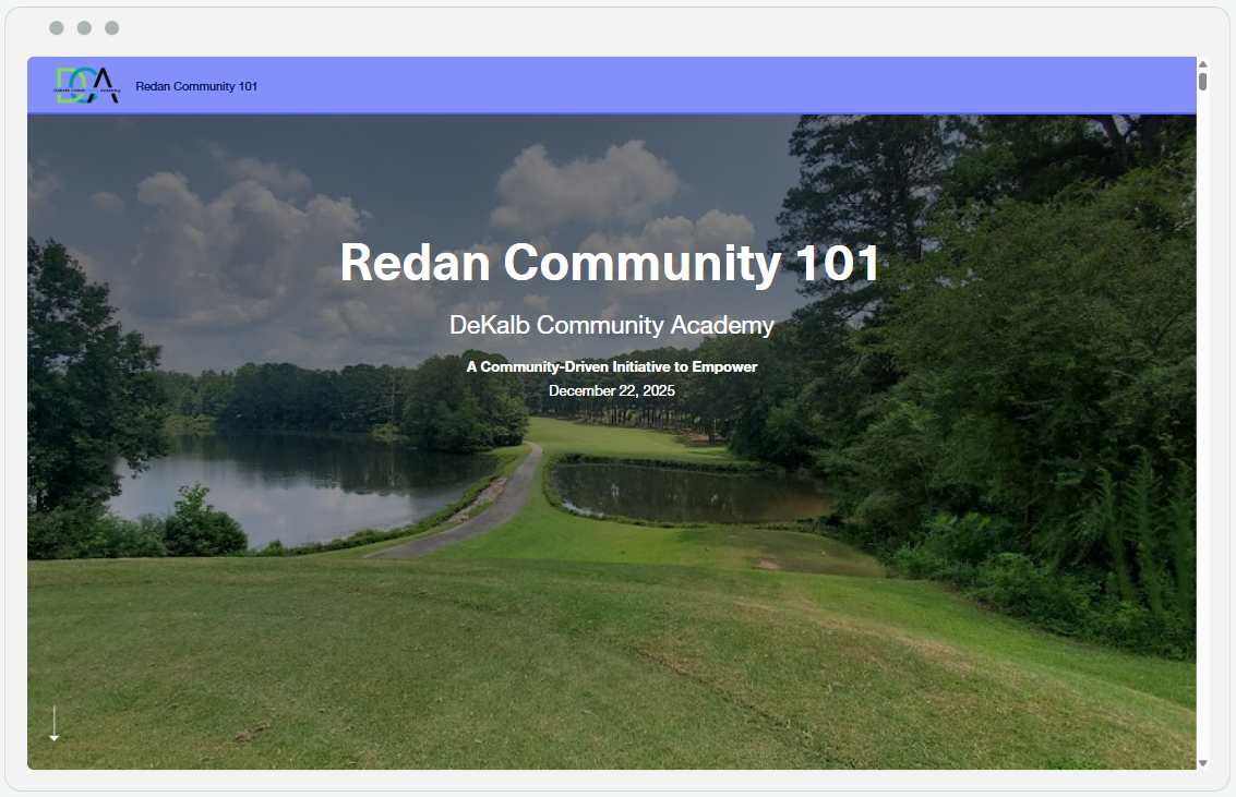 Click on slideshow to view presentation for the first Public Meeting Redan 101!